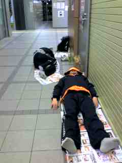 駅の床に新聞ひいて、はまなすの到着を待つ。