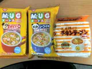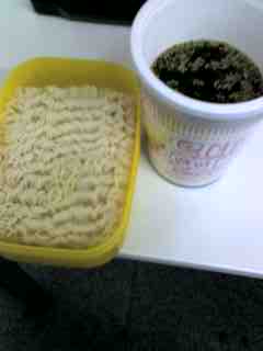 ちなみに、今日はマグカップヌードルコンソメしょうゆ2個入れ。