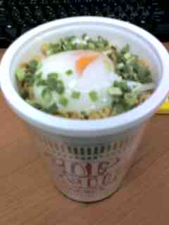 卵を乗せ、お湯を注いで完成。