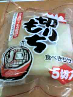くらいまでお湯を注ぎ、よくかき混ぜた後、餅を三個投入。